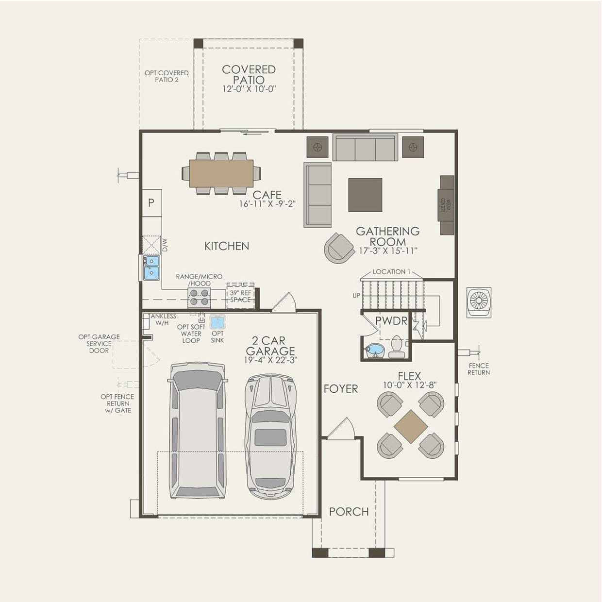 Click or call 623-900-1453 to schedule today. The single-story Farmington plan at Canyon Views offers an open gathering and dining room with the option of a cozy fireplace.